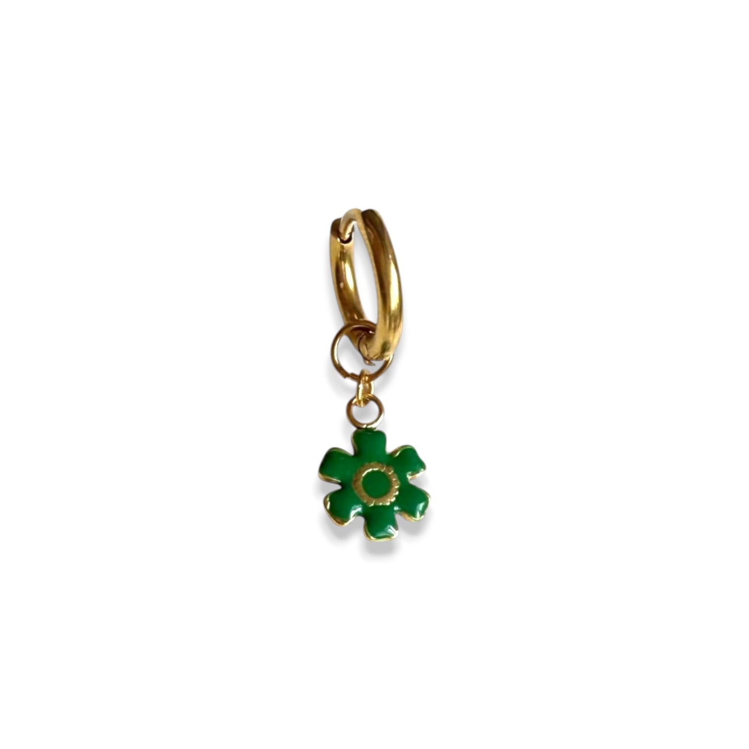 Oorbel groene bloem. 1stuk. Perfect om te combineren met onze andere single earrings. Mix en match jouw eigen stijl.