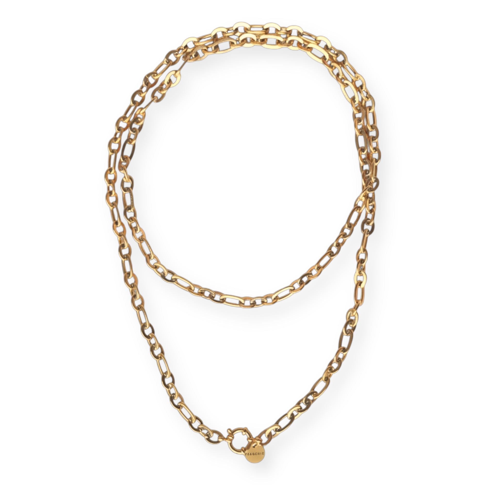 Je kan de ketting dubbel gelaagd dragen of er één lange ketting van maken. Wat ons betreft de perfecte gouden schakelketting voor een layered look. De ronde sluiting kan zowel voor als achter gedragen worden en leent zich perfect om te combineren met een van onze charms.