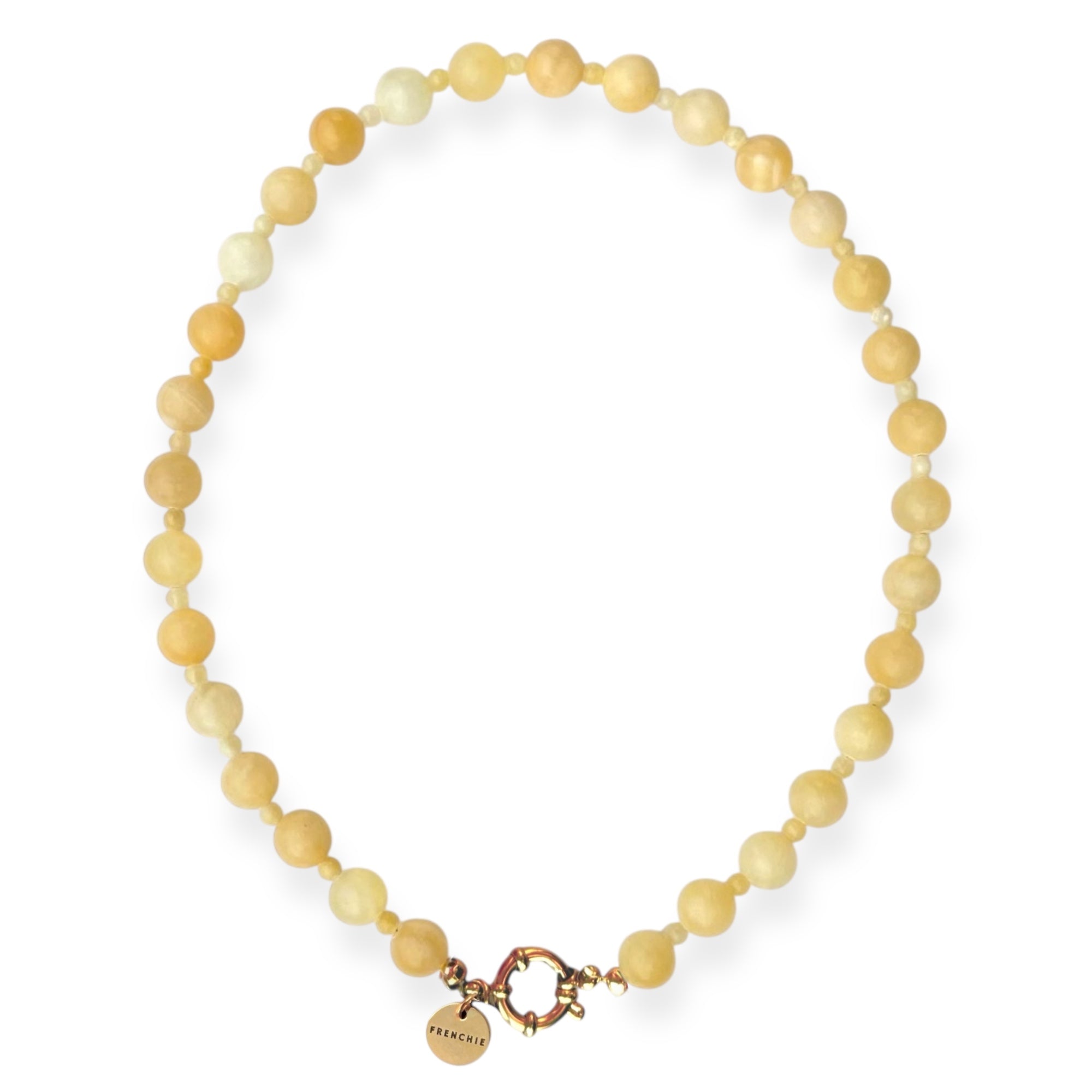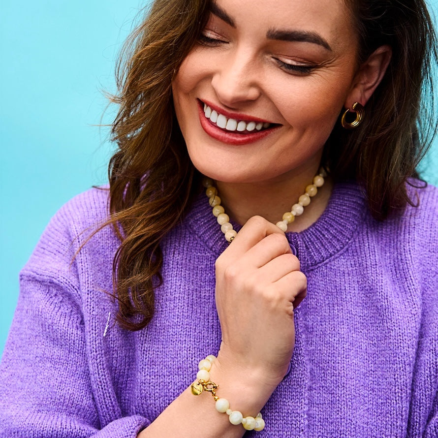 Butter Yellow geeft je outfit net dat beetje extra. Deze trendkleur is perfect te combineren met andere zachte frisse kleuren. De gele natuursteen heeft een rijke uitstraling. De ronde stainless steel sluiting kan zowel voor als achter gedragen worden en leent zich perfect om te combineren met een van onze charms.