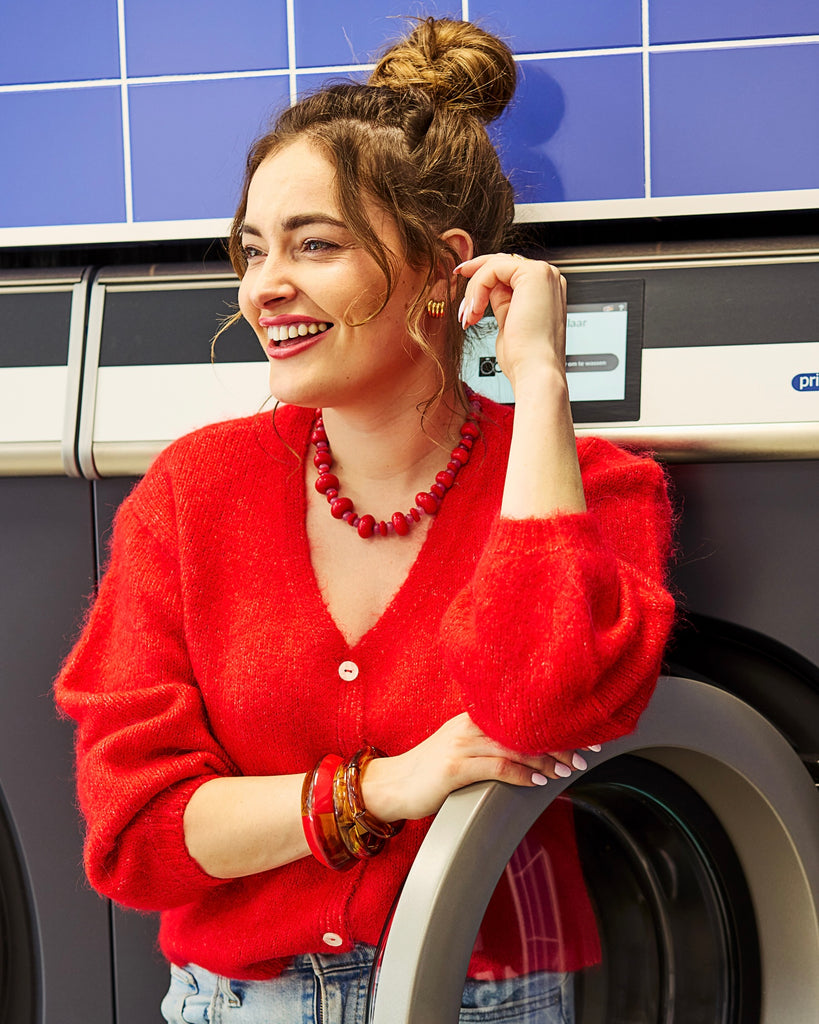 Rouge rebel is echt gecreëerd voor de fashionista's die met kleur durven te spelen. Deze color blocked kralen ketting valt op, en geeft een funky twist aan je outfit.